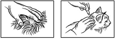c. En gatos separar el pelo en la base de la nuca, hasta ver la piel y aplicar.