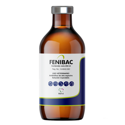 FENIBAC es un antibiótico de amplio espectro ideal para el tratamiento de infecciones respiratorias, gastrointestinales y en problemas de pododermatitis bovina. Por ser solución inyectable es de fácil administración en el ganado.
