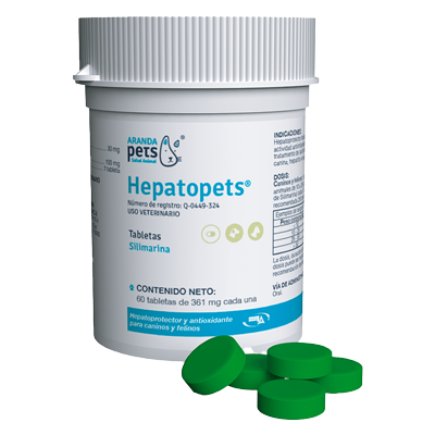 Hepatoprotector indicado en caninos y felinos, con actividad antiinflamatoria y antioxidante para el tratamiento de daño hepático agudo, hepatitis crónica canina, hepatitis viral aguda y lipidosis hepática felina..