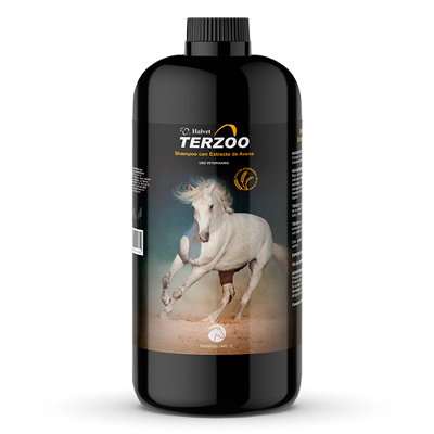 DESCRIPCIÓN: TERZOO SHAMPOO para equinos está formulado para la higiene y el cuidado de la piel en caballos, logrando en el animal una apariencia impecable con un pelaje brilloso, sedoso y un agradable aroma. Además, es auxiliar en pacientes con cualquier clase de dermatitis, por las propiedades hipoalergénicas y emolientes de la avena, debido a que contiene lípidos, polisacáridos y proteínas que calman el prurito, la inflamación y mantienen el pH de la piel.
