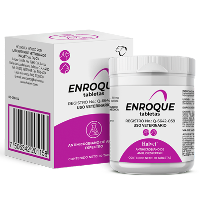 ENROQUE contiene enrofloxacina, una fluoroquinolona que tiene actividad contra bacterias Grampositivas, Gramnegativas y Mycoplasma, en fase de replicación y latencia, convirtiéndolo en el antibiótico de preferencia para su prescripción.