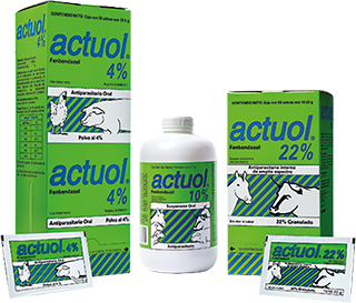 ACTUOL ® 10% Suspensión: ACTUOL ® está indicado en el tratamiento de verminosis gastroentéricas y pulmonares, la actividad persistente de ACTUOL ® dura sólo algunos días después del tratamiento; se recomienda programar intervalos de tres semanas en bovinos productores de carne y de leche, porcinos, caprinos, ovinos y equinos.