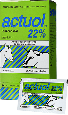 ACTUOL 22% Granulado: ACTUOL está indicado en el tratamiento de verminosis gastroentéricas y pulmonares, la actividad persistente de ACTUOL dura sólo algunos días después del tratamiento; se recomienda programar intervalos de 4 a 6 semanas.