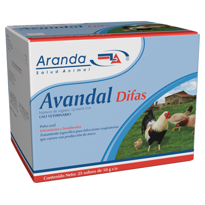 Para el tratamiento de las enfermedades que se presentan como consecuencia de estados de tensión o estrés por maniobras de manejo en la parvada (vacunaciones o despicado) o cambios bruscos en la temperatura o humedad ambiental, así como enfermedades respiratorias de las aves que cursen con aumento en la producción y viscosidad de moco como son: Enfermedad Respiratoria Crónica Complicada (ERCC), coriza infecciosa y cólera aviar..