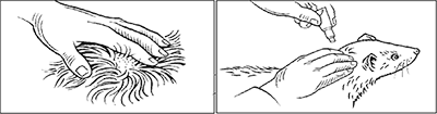b. En hurones separar el pelo en la base de la nuca, hasta ver la piel y aplicar.