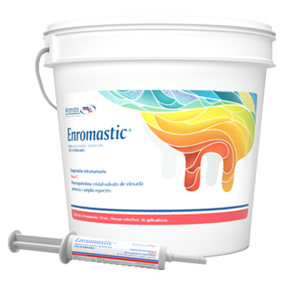 Fluoroquinolona recristalizada y solvatada en su forma clorhidrato-dihidrato, que mejora notablemente su potencia y mantiene su amplio espectro, indicada en bovinos, ovinos y caprinos productores de leche en producción para el tratamiento de mastitis infecciosas causadas por microorganismos sensibles al principio activo, por ejemplo: Escherichia coli, Staphylococcus aureus, S. intermedius, Klebsiella pneumoniae, Streptococcus agalactiae, S. dysgalactiae, S. uberis, Enterococcus faecalis y Proteus spp.