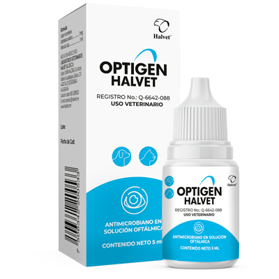 OPTIGEN HALVET contiene gentamicina, que es un antibiótico aminoglucósido indicado para el tratamiento de diversas infecciones bacterianas.